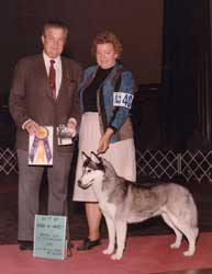 Another favorite boy "SHADOW" wining at a Siberian Husky Specialty. |